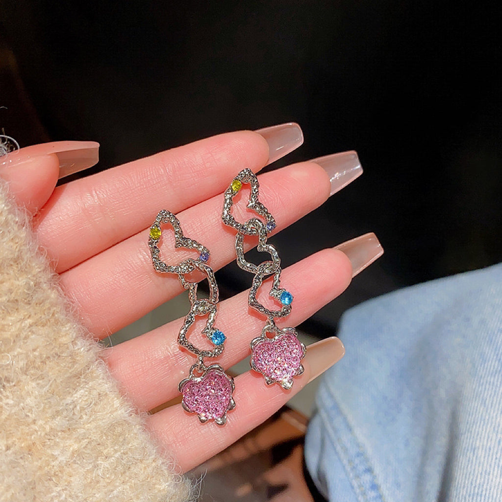 Silver Pink Heart Stud Earrings